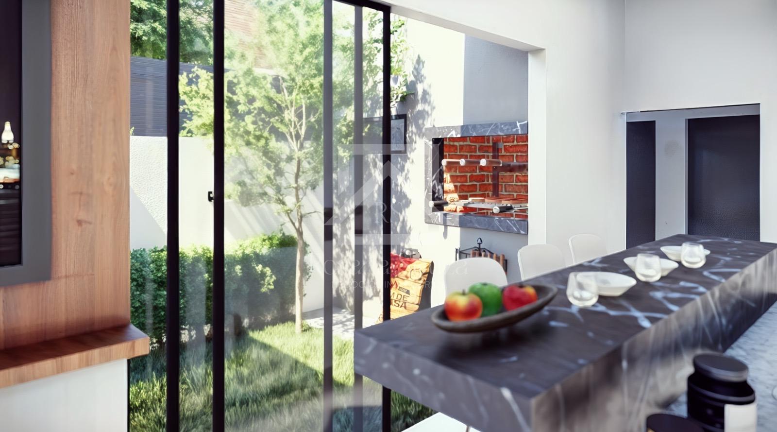 EM MÁRMORE COM CUBA-TUBULAÇÃO DE AR CONDICIONADO EMBUTIDA-TUBULAÇÃO PARA INSTALAÇÃO FOTOVOLTAICA-REVESTIMENTOS EM PORCELANATO-PORTAS INTERNAS EM PVC-PORTAS EXTERNAS ALUMÍNIO-PINTURA EXTERNA PROJETADA-FACHADA COM PERFIL EM LED-CASAS COM LAJE
