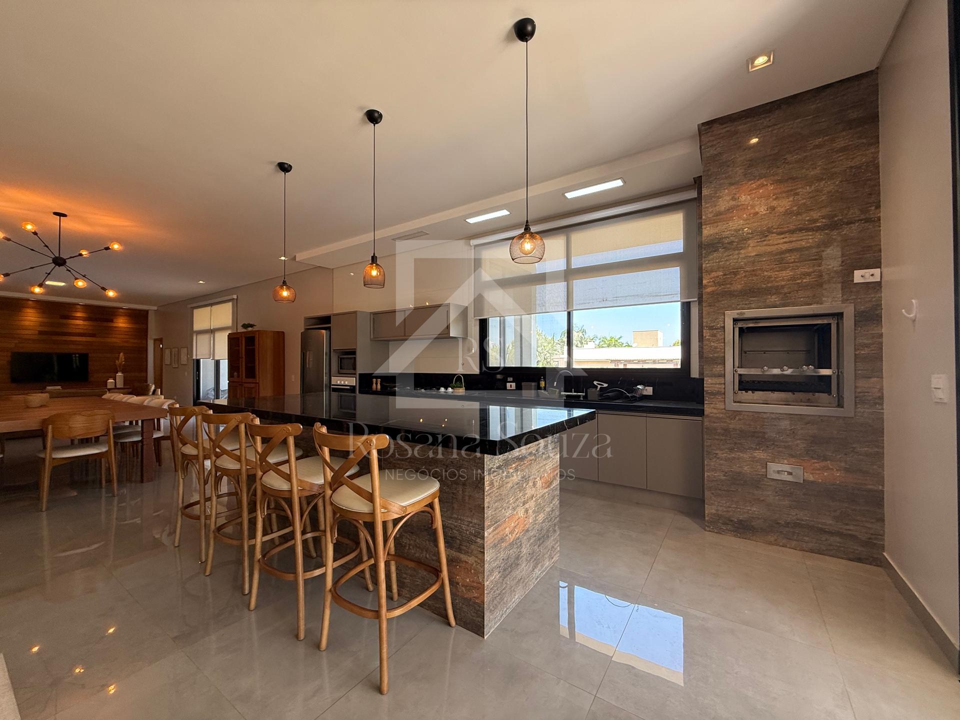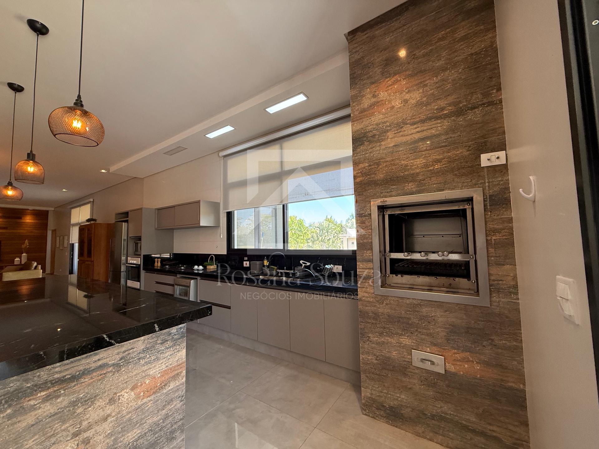 Uma ampla cozinha gourmet com churrasqueira